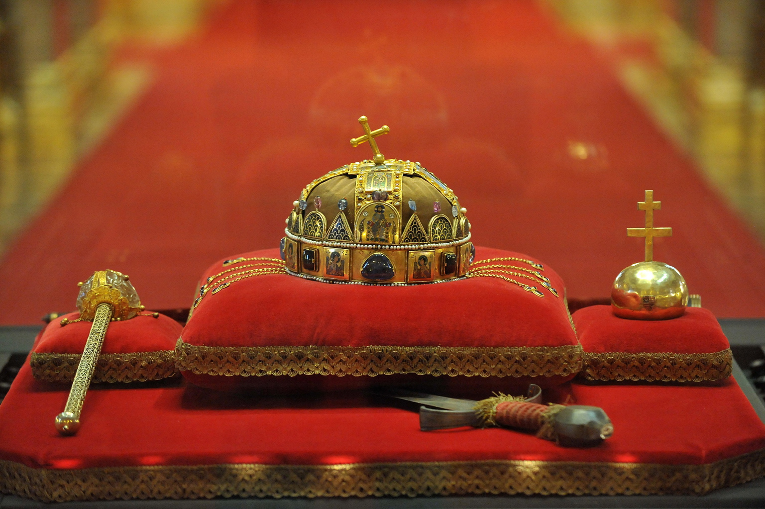 | A Szent Korona az Országház kupolacsarnokában. Fotó: Kovács Tamás/MTI |